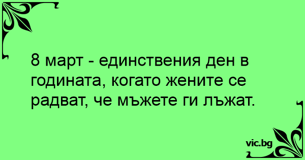 8 март - единствения ден в годината, когато жените се радват, че мъжете ги лъжат.