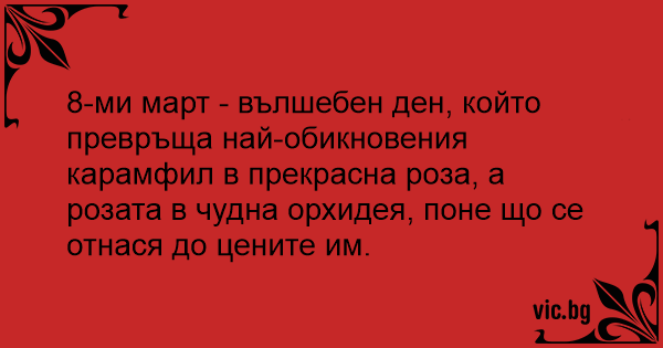 8-ми март - вълшебен ден, който превръща най-обикновения карамфил в прекрасна роза, а розата в чудна орхидея, поне що се отнася до цените им.