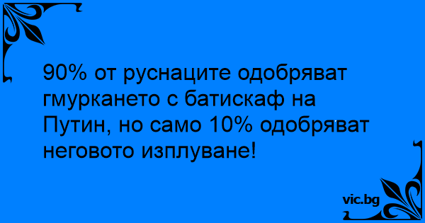 90% от руснаците одобряват гмуркането с батискаф на Путин, но само 10% одобряват неговото изплуване! English Deutsch Español Русский Français Italiano Ελληνικά Македонски Türkçe Українська Português Polski Svenska Nederlands Dansk Norsk Suomi Magyar Româna Čeština Lietuvių Latviešu Hrvatski