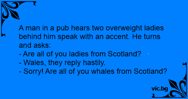 So I walked into a this bar and heard two girls speaking in what sounded like a lovely Scottish accent. I said: