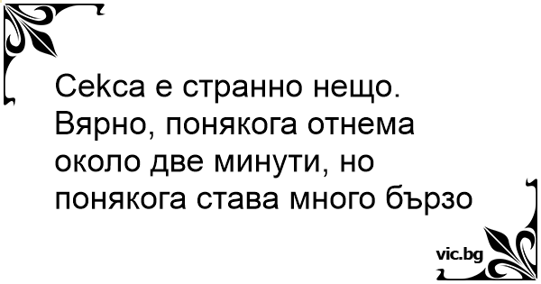 Sеx er en merkelig ting. Noen ganger tar det 2 minutter og noen ganger skjer det veldig raskt.
