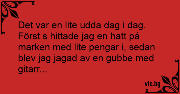 Det var en lite udda dag i dag. Först s hittade jag en hatt pả marken med lite pengar i, sedan blev jag jagad av en gubbe med gitarr...