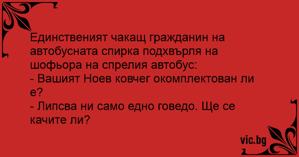 Eдинственият чакащ гражданин на автобусната спирка подхвърля на шофьора на спрелия автобус: