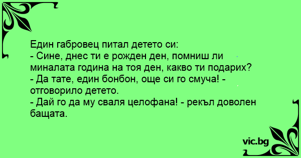 - Сине, днес ти е рожден ден, помниш ли миналата година на тоя ден, какво ти подарих?