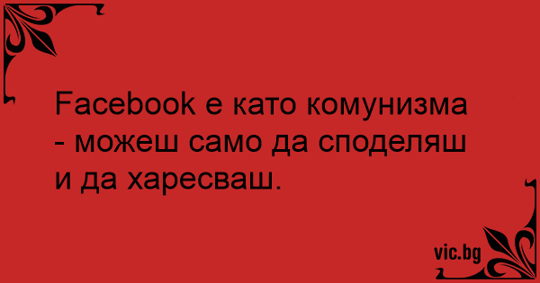 Facebook е като комунизма - можеш само да споделяш и да харесваш.