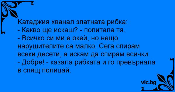 - Добре! - казала рибката и го превърнала в спящ полицай.