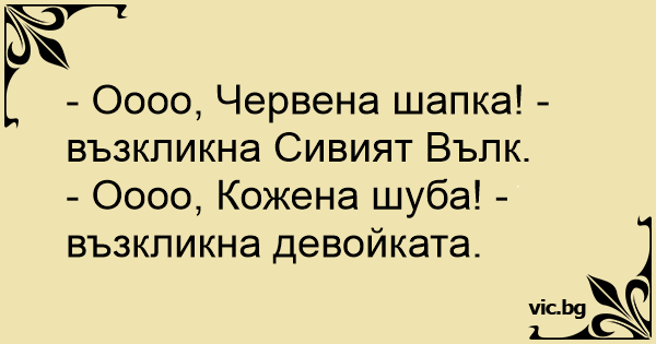 - Oooo, Червена шапка! - възкликна Сивият Вълк.
