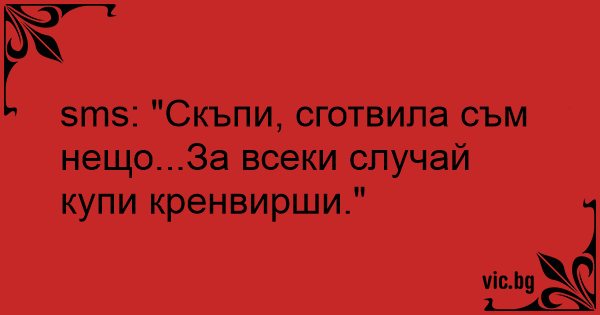 sms: "Скъпи, сготвила съм нещо...За всеки случай купи кренвирши."