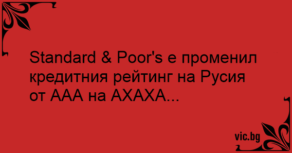 Standard & Poor's е променил кредитния рейтинг на Русия от ААА на АХАХА...