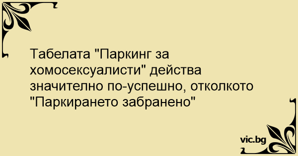 Tабелата "Паркинг за хomocekcуaлиctи" действа значително по-успешно, отколкото "Паркирането забранено"