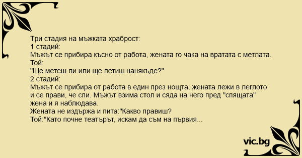 Мъжът се прибира късно от работа, жената го чака на вратата с метлата.