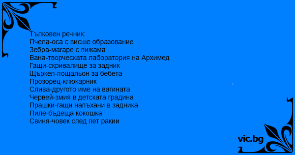 • Вицове от Facebook от нашата страница https://www.facebook.com/www.vic.bg