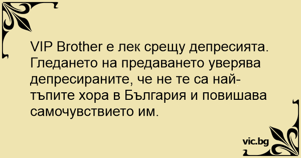 VIP Brother е лек срещу депресията.