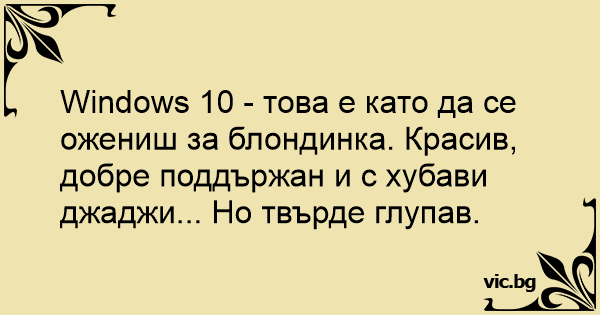 Windows 10 - това е като да се ожениш за блондинка. Красив, добре поддържан и с хубави джаджи... Но твърде глупав.