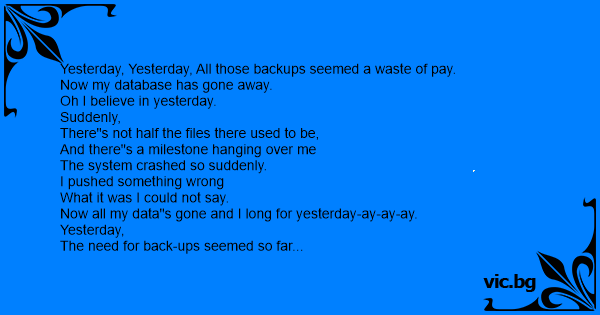 Yesterday, Yesterday, All those backups seemed a waste of pay.