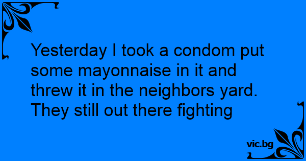 Yesterday I took a соndом put some mayonnaise in it and threw it in the neighbors yard. They still out there fighting