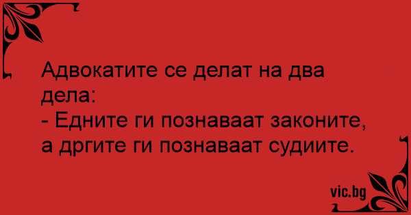 - Едните ги познаваат законите, а дргите ги познаваат судиите.
