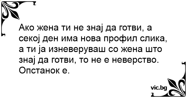 Ако жена ти не знај да готви, а секој ден има нова профил слика, а ти ја изневеруваш со жена што знај да готви, то не е неверство.