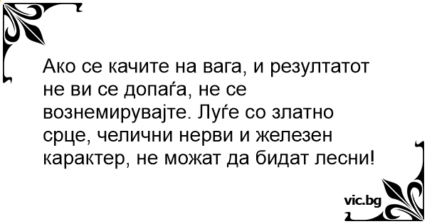 Ако се качите на вага, и резултатот не ви се допаѓа, не се вознемирувајте. Луѓе со златно срце, челични нерви и железен карактер, не можат да бидат лесни!