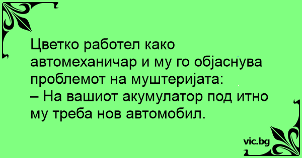 – На вашиот акумулатор под итно му треба нов автомобил.