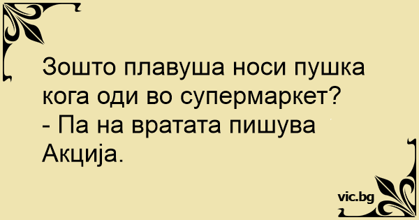 Зошто плавуша носи пушка кога оди во супермаркет?
