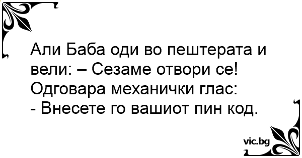 Али Баба оди во пештерата и вели: – Сезаме отвори се! Одговара механички глас: