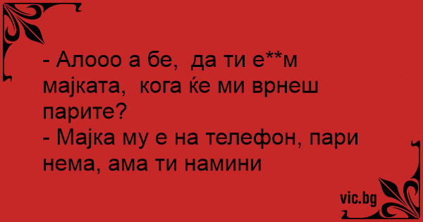 - Алооо а бе, да ти е**м мајката, кога ќе ми врнеш парите?
