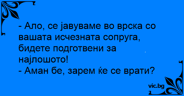 - Ало, се јавуваме во врска со вашата исчезната сопруга, бидете подготвени за најлошото!