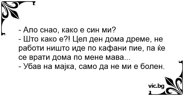 - Што како е?! Цел ден дома дреме, не работи ништо иде по кафани пие, па ќе се врати дома по мене мава...