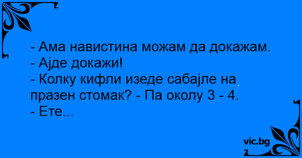 - Колку кифли изеде сабајле на празен стомак? - Па околу 3 - 4.