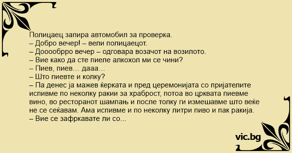 – Вие се зафркавате ли со мене? Не ли гледате дека ве запира полицаец за проверка и за алкохолен тест?