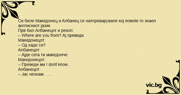 Си биле Македонец и Aлбанец се натпреварувале кој повеќе го знаел англискиот јазик.