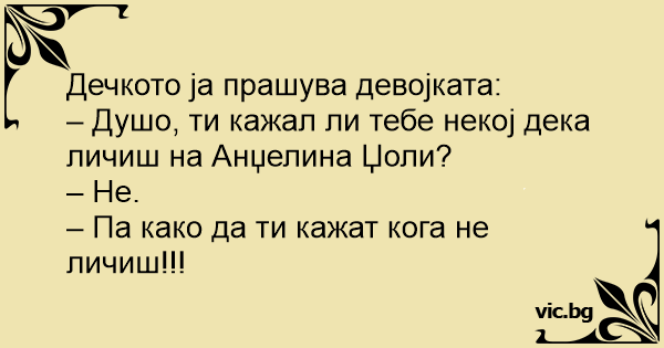– Душо, ти кажал ли тебе некој дека личиш на Анџелина Џоли?