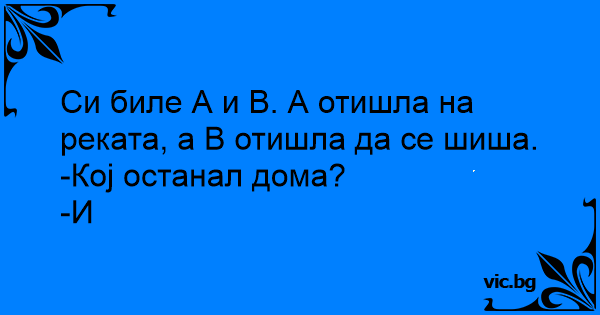 Си биле А и В. А отишла на реката, а В отишла да се шиша.