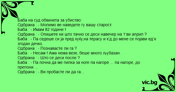 Баба : - Ааааа ... Викна - „ АПРИЛИЛИЛИ “ ! Еееее т‘га га упуца, племе да му е*у !