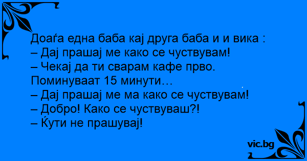 Доаѓа една баба кај друга баба и и вика :
