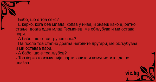 - А бабо, шо е тоа групен cekc?