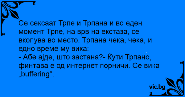 - Абе ајде, што застана?- Ќути Трпано, финтава е од интернет порничи. Се вика „buffering“.