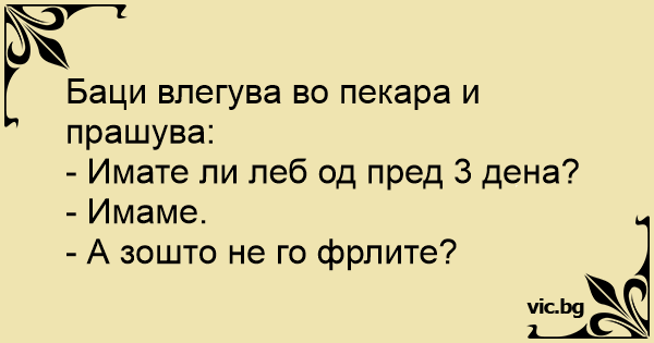 Баци влегува во пекара и прашува: