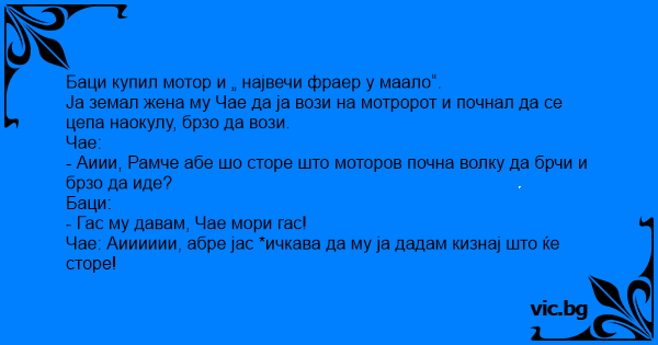Баци купил мотор и „ највечи фраер у маало“.