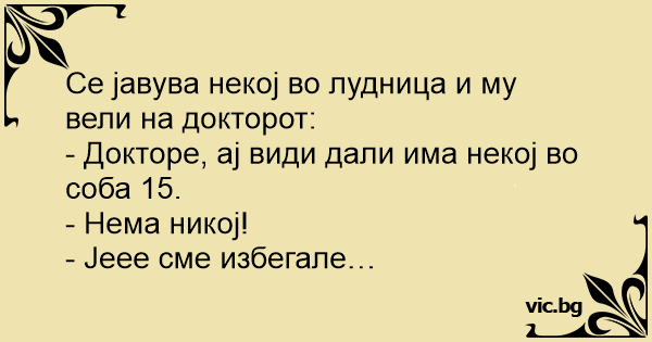 Се јавува некој во лудница и му вели на докторот: