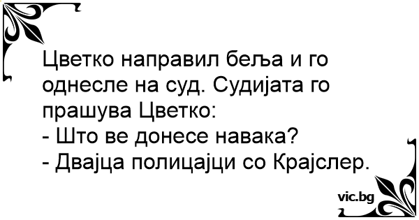 Цветко направил беља и го однесле на суд. Судијата го прашува Цветко: