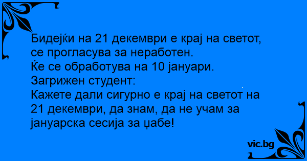 Кажете дали сигурно е крај на светот на 21 декември, да знам, да не учам за јануарска сесија за џабе!