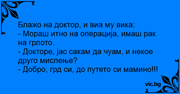 - Докторе, јас сакам да чуам, и некое друго мислење?