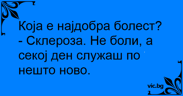 - Склероза. Не боли, а секој ден служаш по нешто ново.