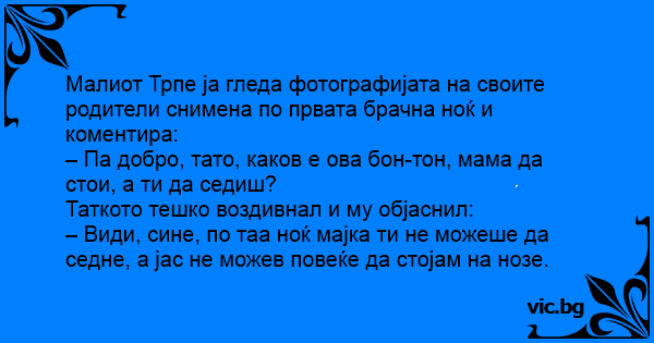 – Па добро, тато, каков е ова бон-тон, мама да стои, а ти да седиш?