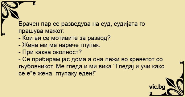Брачен пар се разведува на суд, судијата го прашува мажот: