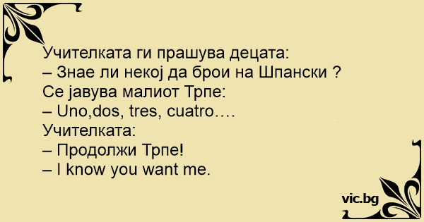 – Знае ли некој да брои на Шпански ?