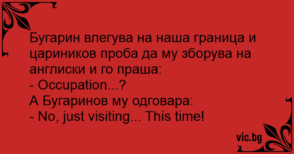 Бугарин влегува на наша граница и цариников проба да му зборува на англиски и го праша: