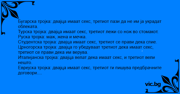 Македонска тројка: еден имал cekc, двајца други му завидуваат.